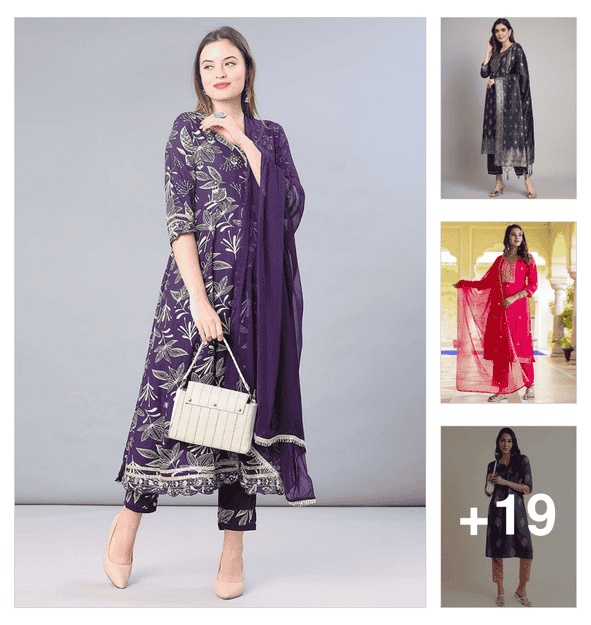 women embroidered three quarter sleeve kurta pant with dupatta set