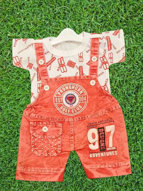 - » boys printed t-shirt & dungaree casual wear set