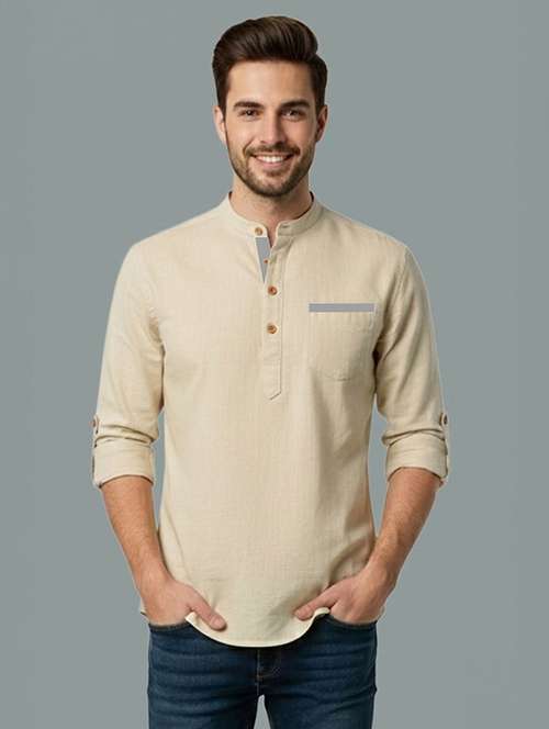 - » men solid mandarin neck short kurta