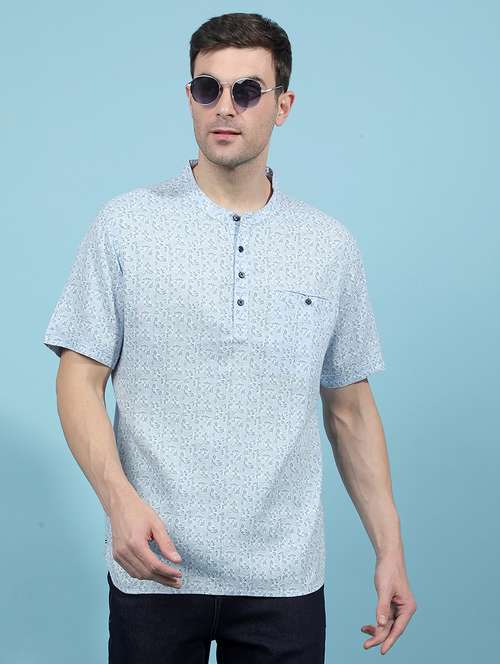 - » men printed short sleeve short kurta