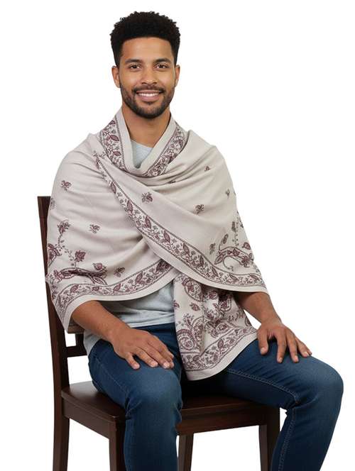 men solid with work pashmina shawl