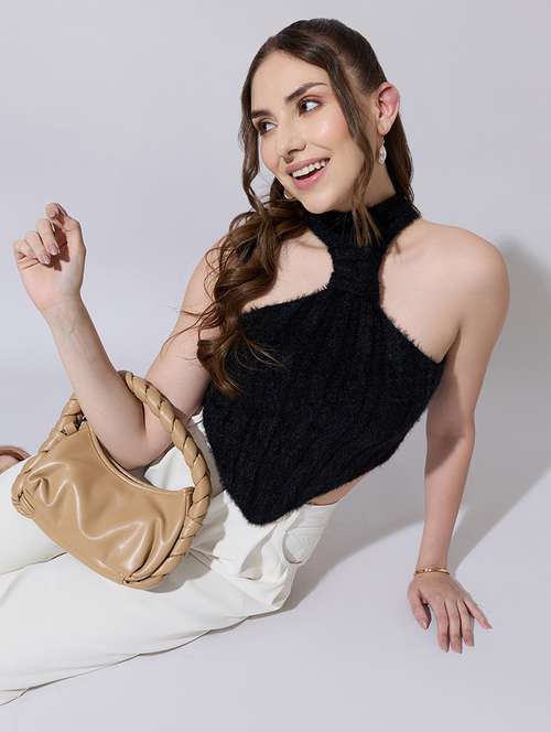- Opt for this top made up of acrylic material and get it in a varied neck design.