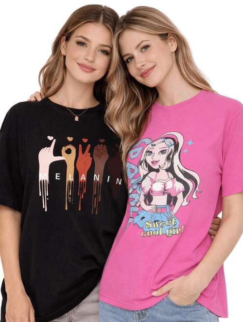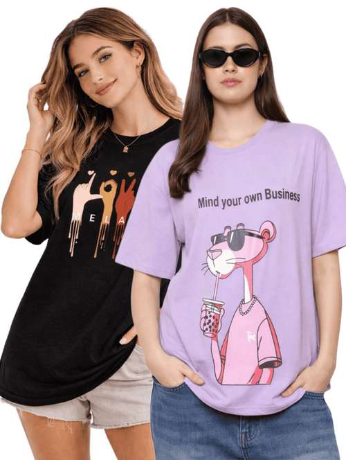 women pack of 2 printed oversized t-shirt