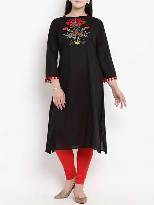 - » embroidered slit a-line kurta with tassels