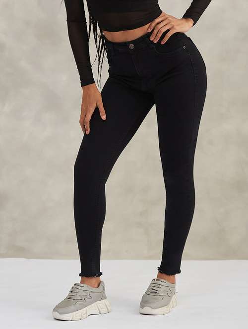 - » women solid high rise skinny jeans