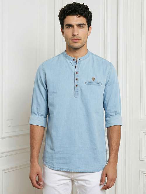 - » men solid mandarin neck short kurta