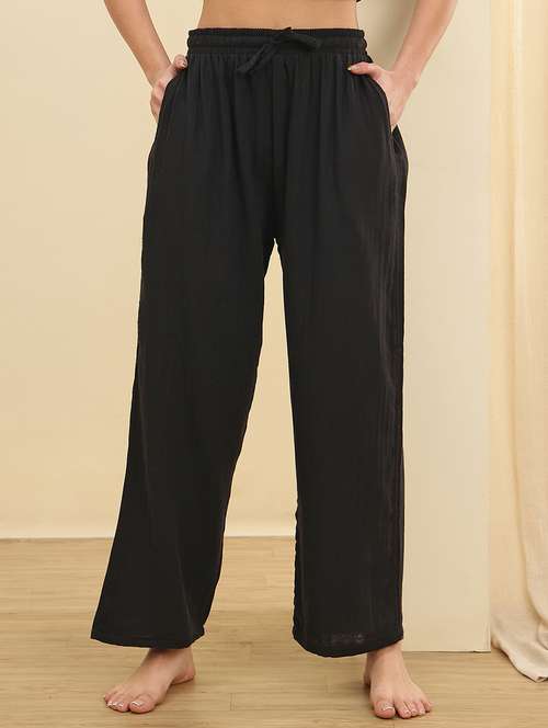 Unwind in style with these Self design lounge pants, made from soft, breathable cotton. Featuring a comfy stretch fit, elasticated waistband, and hidden drawstring for all-day ease and comfort.