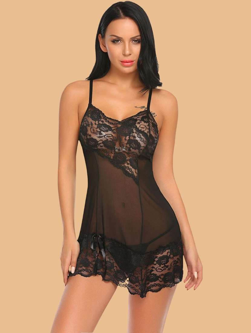 - » women self designed sleeveless lace babydoll