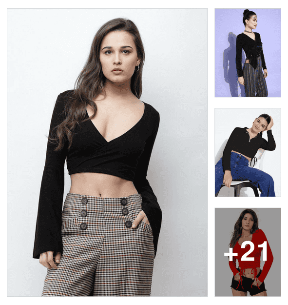 women's crop v neck top