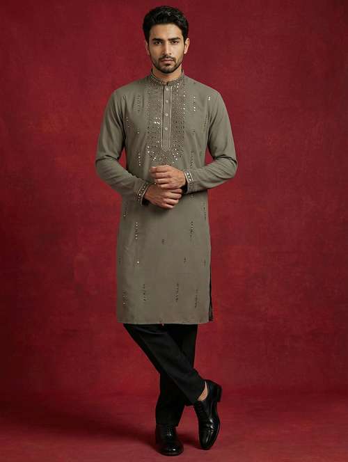 - » men solid with work mandarin neck kurta pyjama set