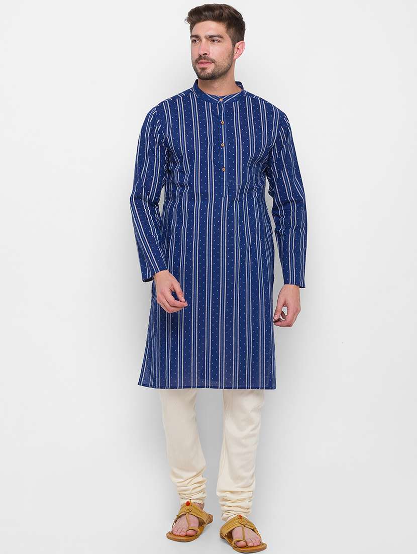 navy blue striped printed long kurta