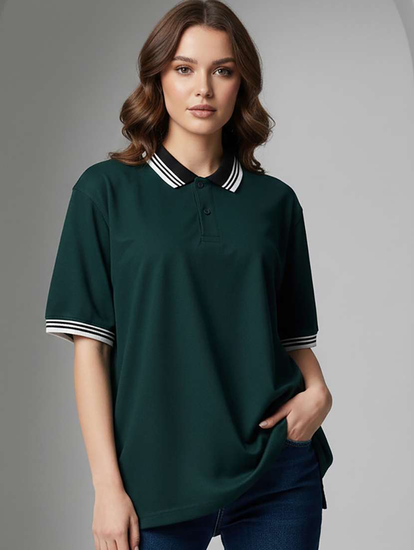 - » women solid short sleeve oversized polo t-shirt