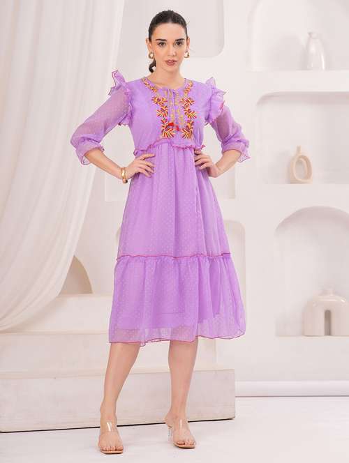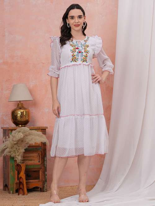 women self designed three quarter sleeve tiered dress - 22305890 -  Standard Image - 1 women self designed three quarter sleeve tiered dress - 22305890 -  Zoom Image - 1