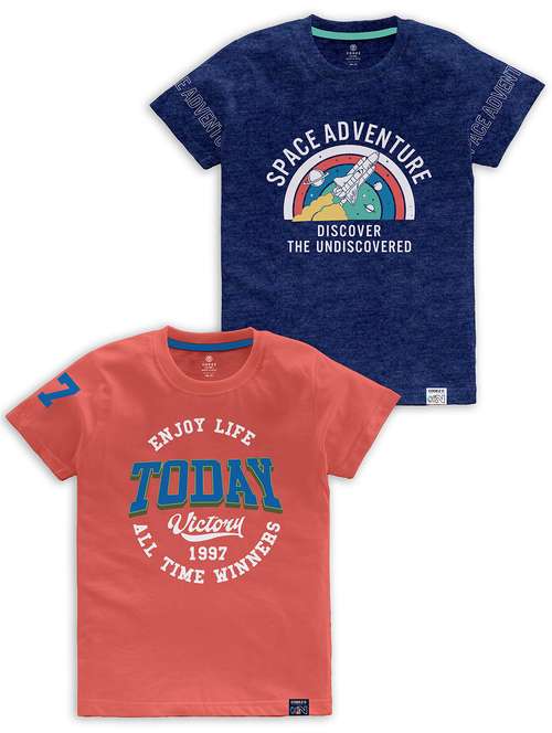 boys round neck printed set of 2 regular t-shirt