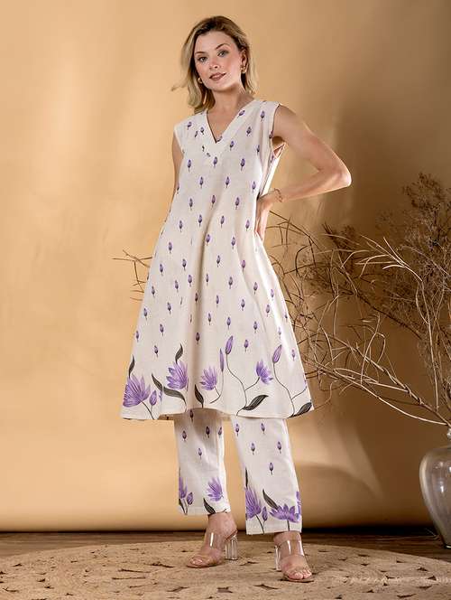 women floral printed sleeveless kurta pant set