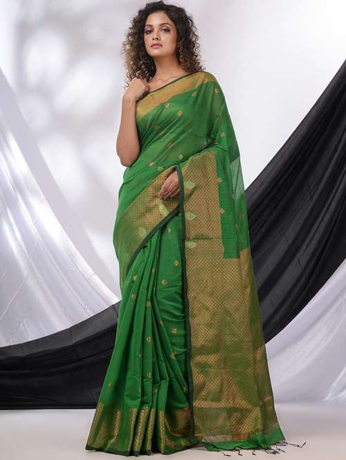 green cotton blend handloom saree with blouse