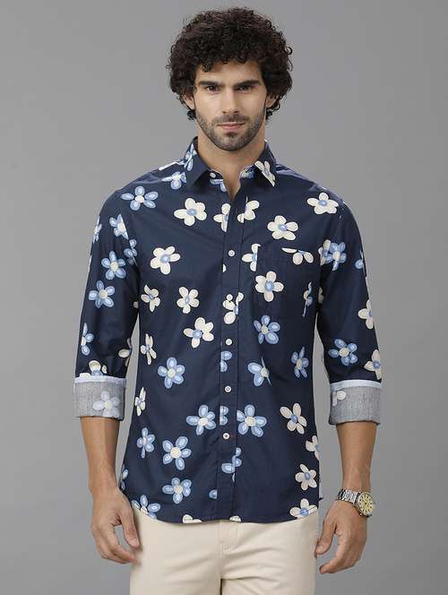 men floral printed long sleeve casual shirt