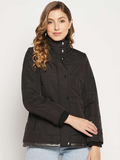 black quilted jacket with standing collar
