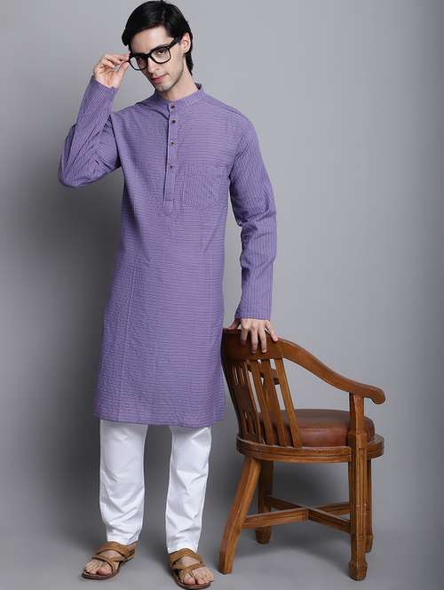 men striped mandarin neck long kurta