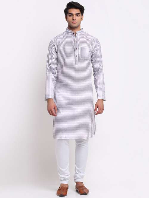 men purple & white striped long kurta