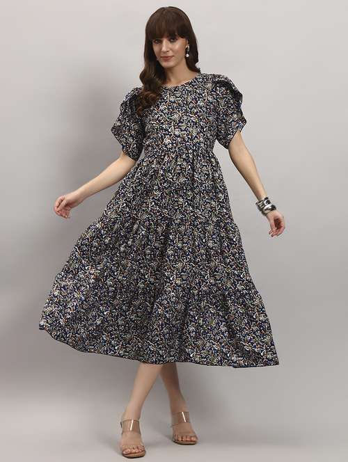 women printed tulip sleeves tiered dress