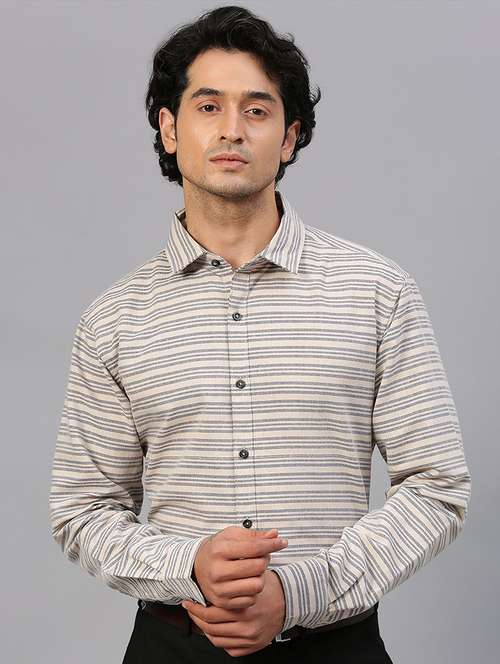 men striped long sleeve regular fit casual shirt