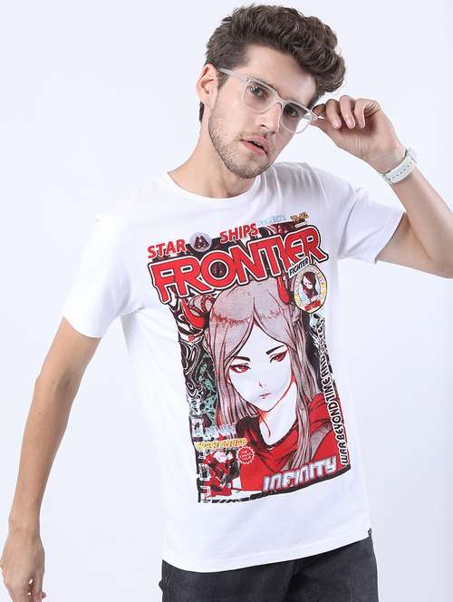 men front print round neck t-shirt