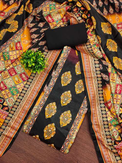 women solid with work unstitched suit set