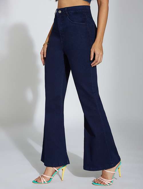 women solid high rise bootcut jeans