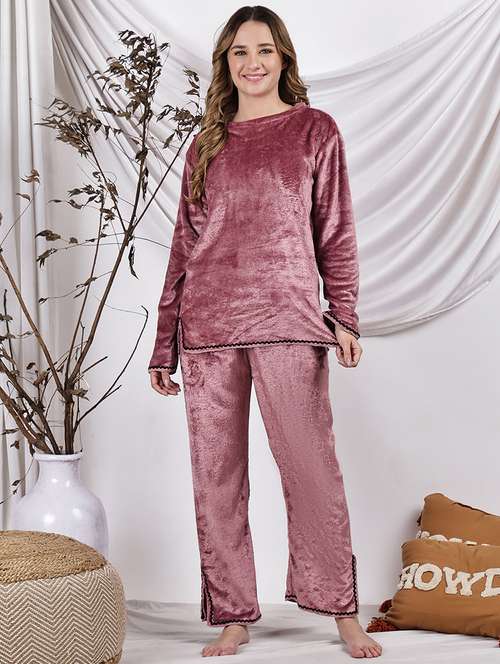 women solid nightwear pyjama set