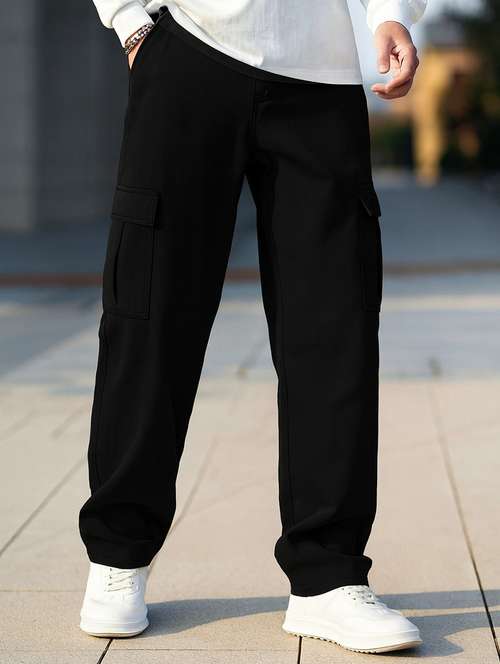 men solid mid rise relaxed fit cargo