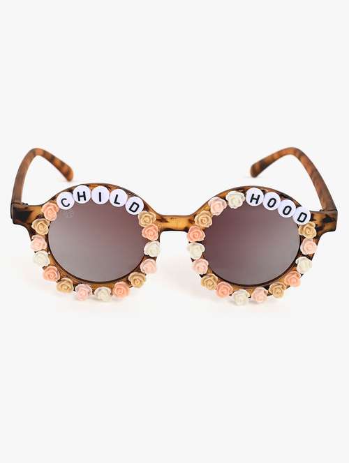 - Protect sensitive eyes of your little girl from bright sun rays in brown sunglasses available in ONE SIZE with the perfect fit.
