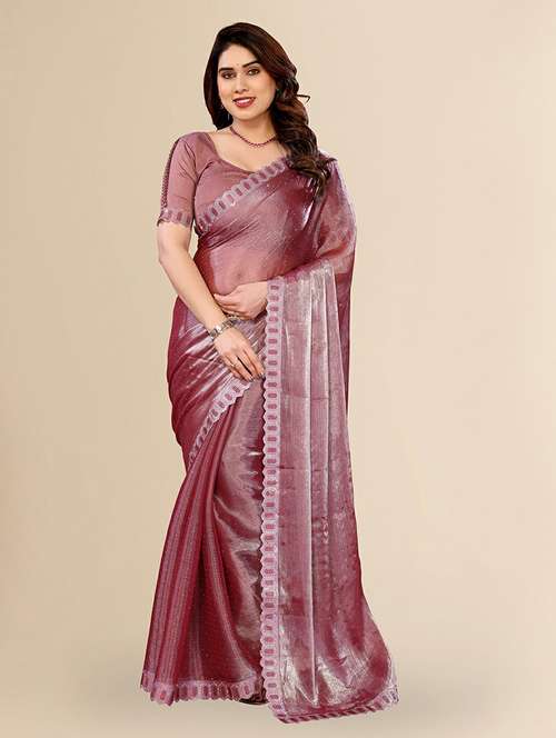 women solid with work embellished saree with blouse