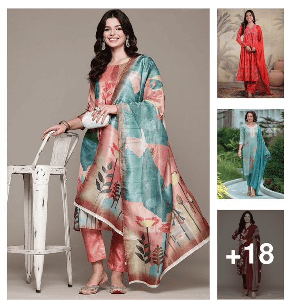 women embroidered three quarter sleeve kurta pant with dupatta set