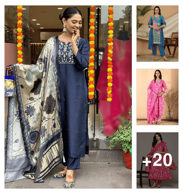 women three quarter sleeve kurta pant with dupatta set