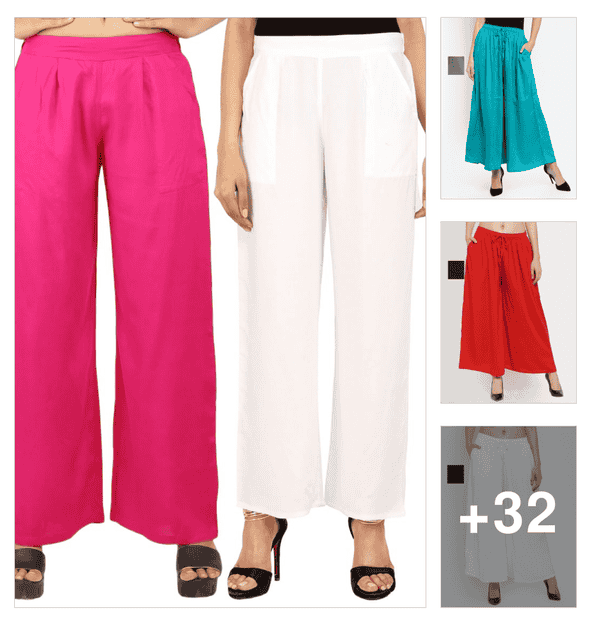 women pack of 2 solid flared palazzo