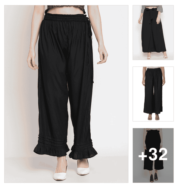 women solid mid rise ruffle palazzo