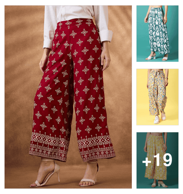 women printed mid rise straight palazzo