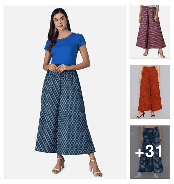 women printed mid rise straight palazzo