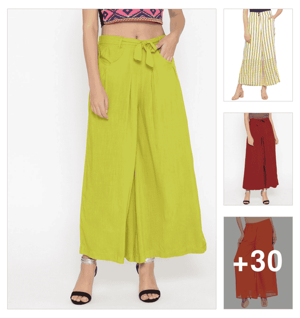 women pack of 2 solid flared palazzo