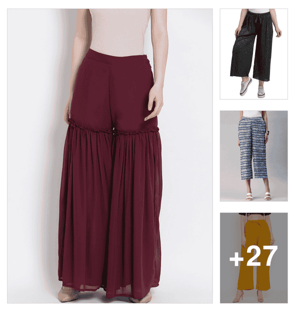 women solid mid rise ruffle palazzo
