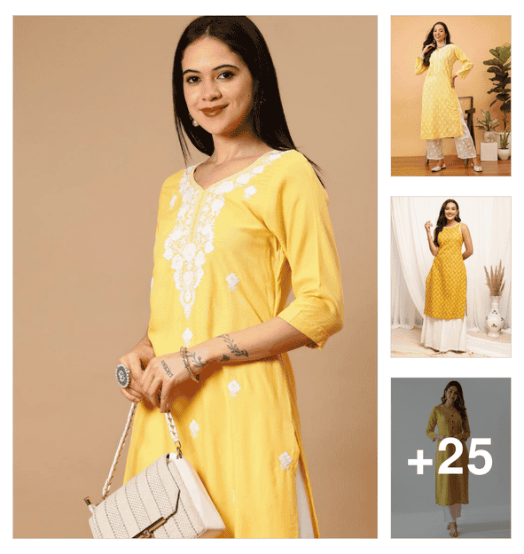 women yellow three quarter sleeve straight kurta