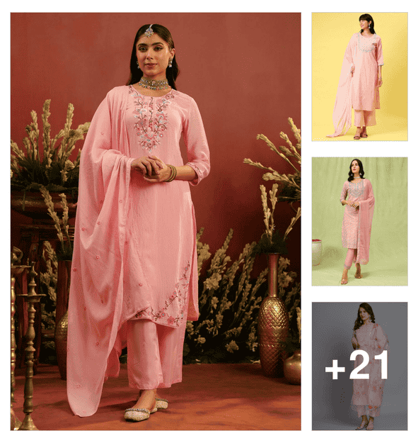women pink kurta pant set with dupatta