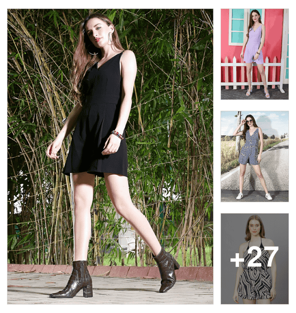 globus women black sweetheart neck bishop sleeves floral print playsuit with belt