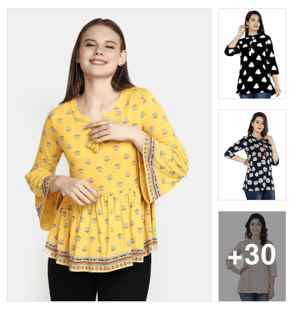 women printed bell sleeve tunic