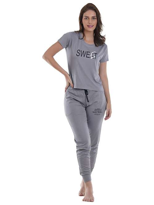women typographic short sleeve pyjama set nightwear