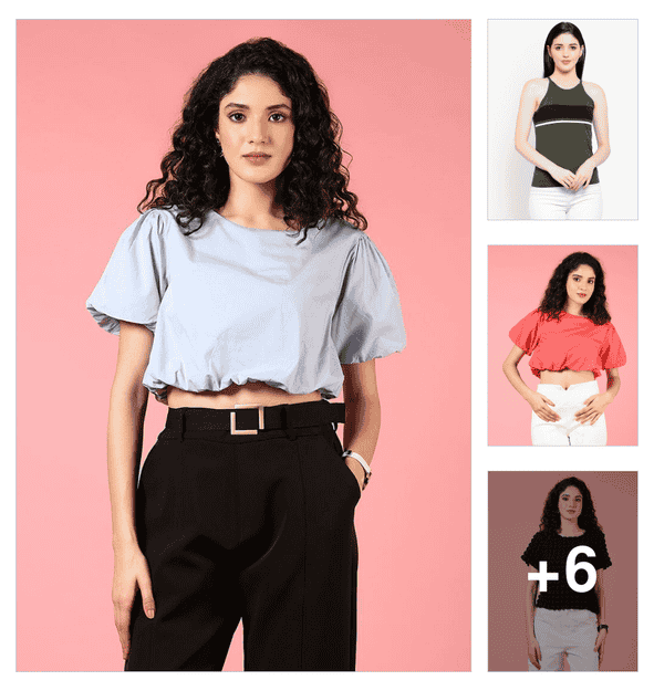 women's crop round neck top