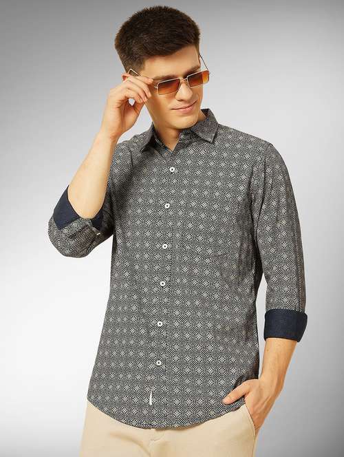 - » men printed long sleeve regular fit casual shirt