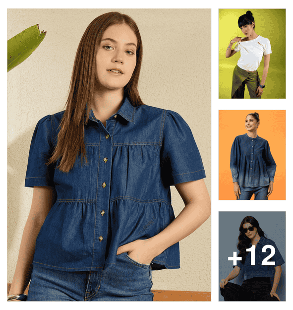 women solid collared denim summer jacket