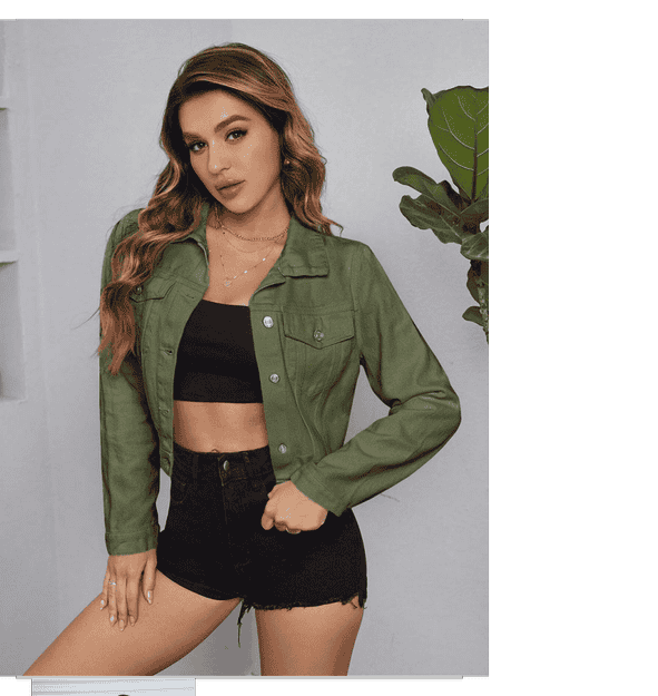women solid collared denim summer jacket